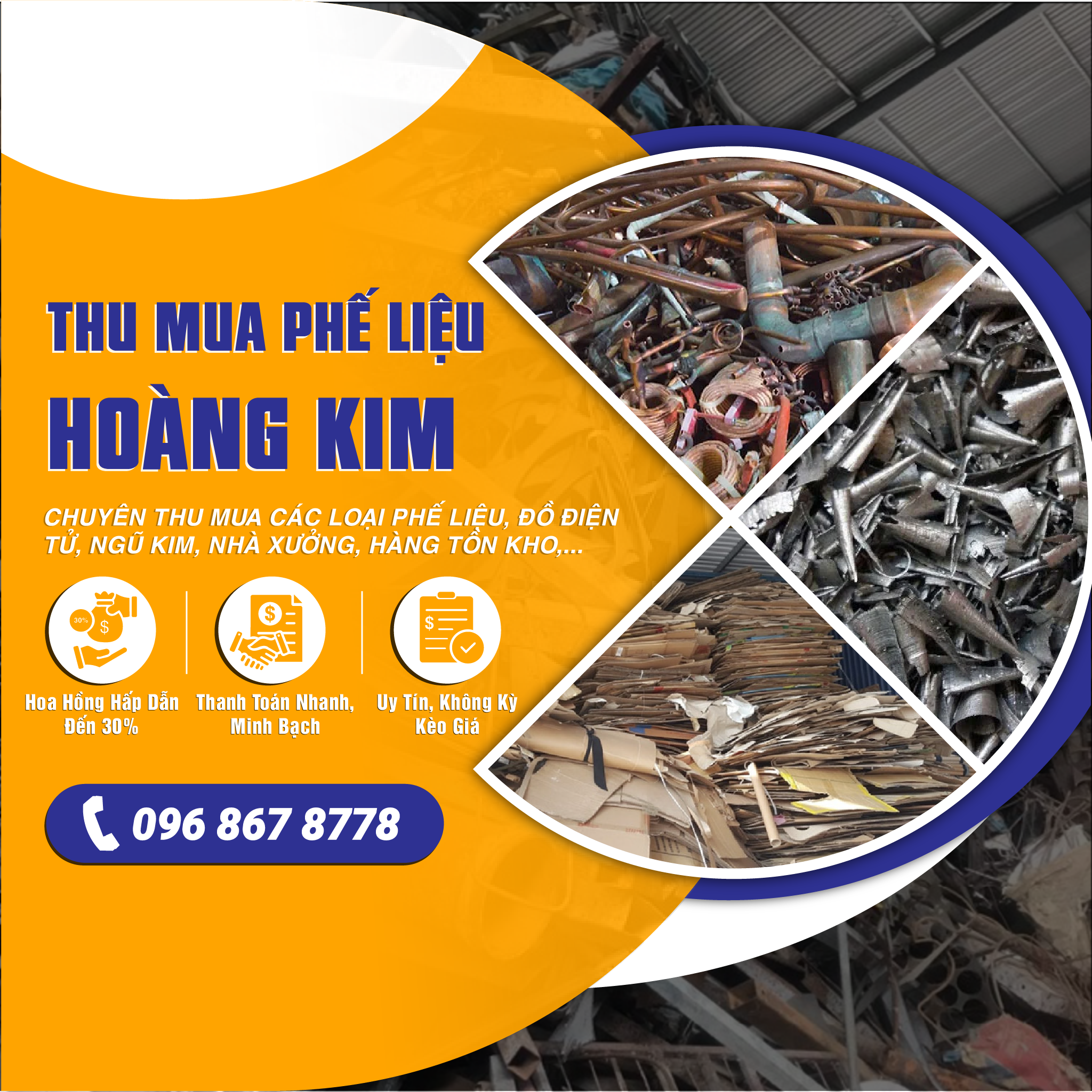 Gọi cho Phế Liệu Hoàng Kim để được tư vấn và báo giá nhanh chóng. Chúng tôi thu mua tận nơi – thanh toán liền tay – phục vụ 24/7.